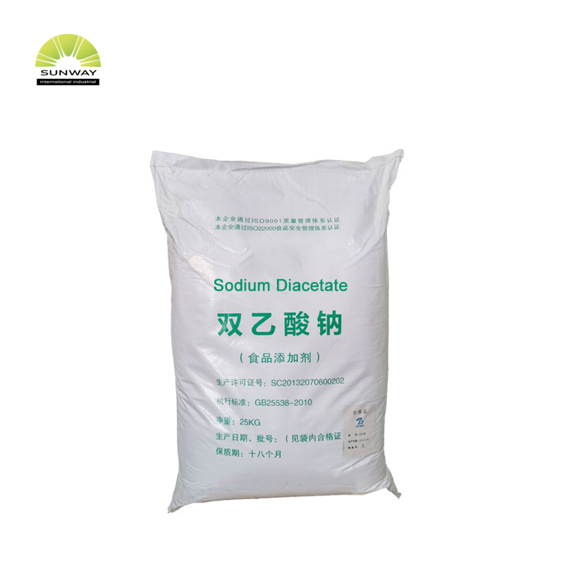 3. Pengatur pH: Natrium diasetat membantu menjaga pH stabil dalam produk makanan, yang sangat penting untuk mencegah pertumbuhan mikroba dan memastikan keamanan makanan.