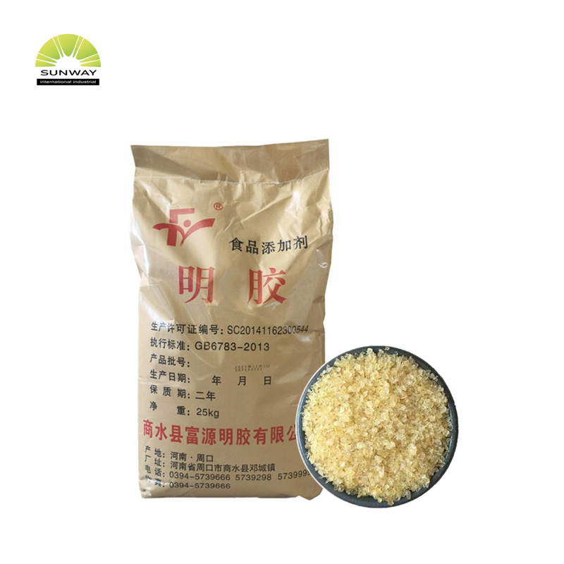 - Sifat Fungsional: Gelatin tidak hanya membantu pengentalan dan pembentukan gel tetapi juga berkontribusi terhadap pengawetan produk makanan dengan mengurangi sineresis (keluarnya cairan) dalam gel.
